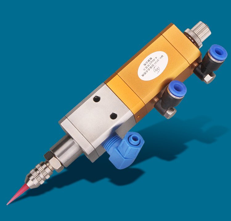 氣動:點膠閥由氣缸、閥體和料缸三部分上下連接而成,氣缸和閥體用先進密封材料隔開,避免膠水侵入氣缸。料缸和氣缸連接在點膠閥閥主體上,與氣缸保證同心度。用電磁閥氣動氣缸運動,從而驅動中心桿上下運動,利用中心桿的上下運動達到對膠水的開啟和關斷作用。根據開啟和關斷的方式不同,從而分為:柱塞式點膠閥、頂針式點膠閥、提升式點膠閥、噴霧點膠閥、噴射點膠閥;開關方式不同,適用的流體也就不同,回吸式點膠閥采用向上運動關膠結構,使停膠同時瞬間回吸斷膠,減少余留針頭上的殘膠,使點膠不產生漏滴、拉絲等現象。膠閥本體經鋁合金陽極氧化處理,密封材料采用最新四氟材料,接觸膠體部分均為耐腐蝕材料。