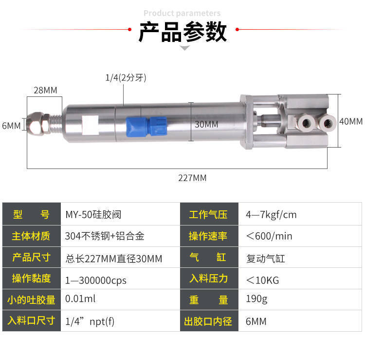 MY-G50大流量氣缸回吸單液閥,適合高粘度膠水如:油脂、硅膠、黃膠、邦定黑膠 、環氧膠、錫膏等;可與各種供料泵或儲料壓力桶使用,可接各式點膠針頭,可與全自動點膠機裝配數個點膠閥同時點膠作業;采用鋁合金陽極化+不銹鋼優質材料制造,不生銹防腐蝕,適合工程/工廠長期生產使用;有大量現貨供應,歡迎咨詢采購!