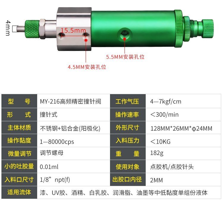 高頻撞針閥精密單液點(diǎn)膠閥精度微調(diào)出膠量點(diǎn)膠機(jī)打膠高速閥MY216