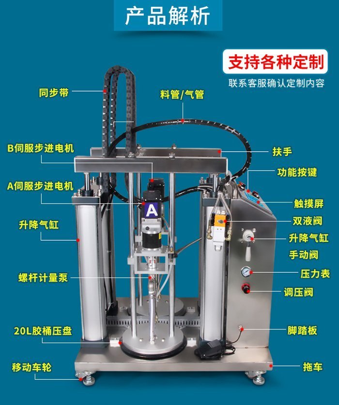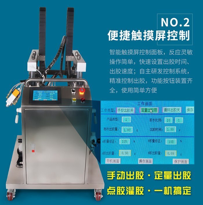 MY—6200雙壓盤泵AB灌膠機,高壓強快速倉庫,自動精準配比,采用PLC觸摸屏控制,工業級器件配合優化的控制軟件,具有控制穩定、精準、實用、壽命長等特點;使用自主研發控制系統,定時定量吐膠精確一致,功能模式多,人性化簡易操作,穩定高效,降低成本,省工省時;采用不銹鋼板外殼,不生銹防腐蝕,適合工程/工廠長期生產使用;現貨供應,歡迎咨詢采購!