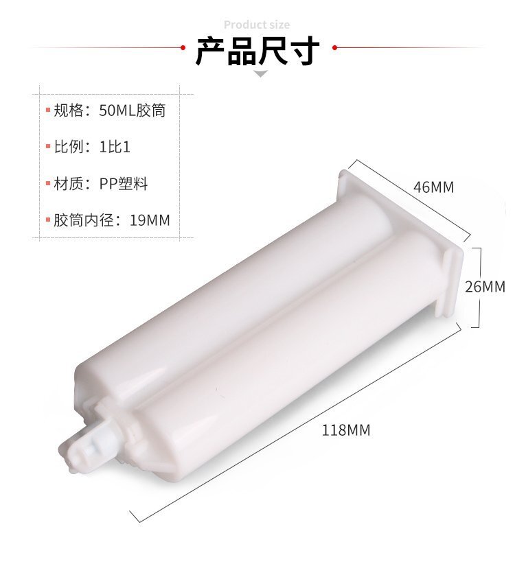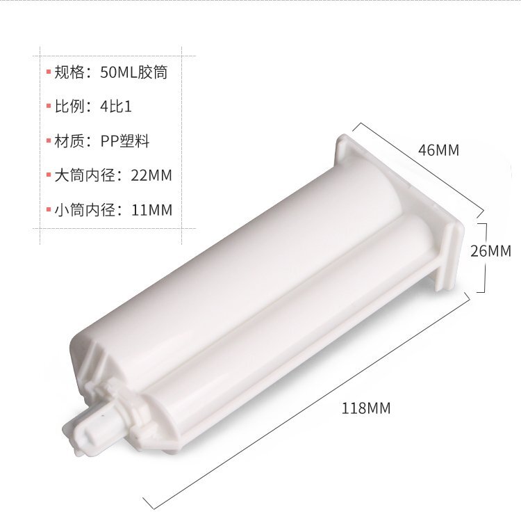 此款膠筒為50毫升1:1AB膠筒,采用韌性PP材料制造,抗壓耐用,不易破裂,適合工程/工廠長期生產使用;有大量現貨供應,歡迎咨詢采購!