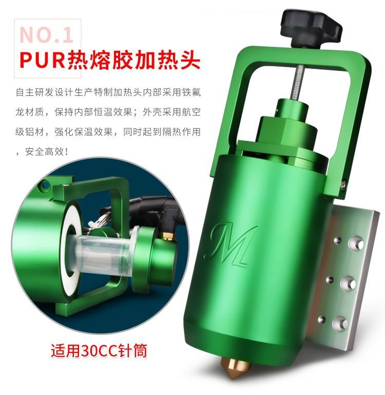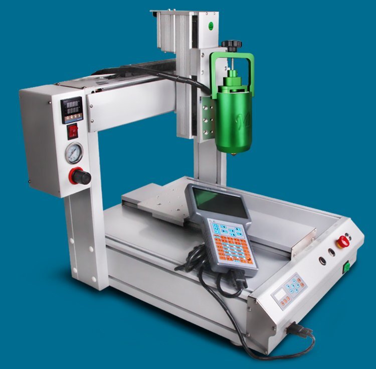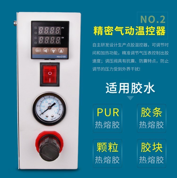 MY-8036是由“331三軸機+9600溫控器+511PUR點膠閥”組合而成的全自動熱熔膠 點膠套裝;三軸機具有畫點、線、面、弧、圓及不規(guī)則曲線連續(xù)補間,可存儲999個點膠工藝文 檔;溫控器加熱范圍在0~200℃,具有控制穩(wěn)定、精準、實用、操作方便等特點;點膠閥加熱速 度快,持久恒溫,耐腐蝕,拆裝簡單便捷等特點;全自動點膠,省工省時,提高生產(chǎn)效率。